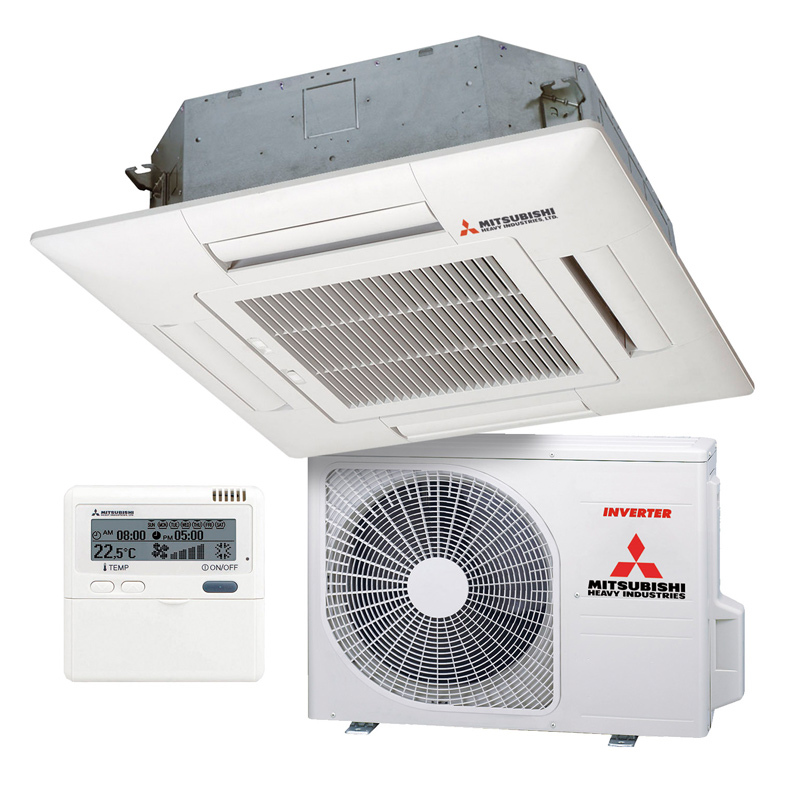 Кассетные кондиционеры часто выбирают для магазинов, баров или помещений с высокими потолками. Как и канальные кондиционеры, для их установки требуется подвесной потолок. Отличие заключается в том, что кассетные системы распределяют охлажденный воздух через нижнюю часть блока. Размер нижней части кассетной сплит системы соответствует стандартной потолочной плитке — 600 × 600 мм, а для моделей большей мощности — 1200 × 600 мм, и она покрывается декоративной решеткой с жалюзи. Главное преимущество кассетных кондиционеров — их незаметность, так как видна лишь декоративная решетка. Кроме того, они обеспечивают равномерное распределение воздуха в четырех направлениях, позволяя охладить большое помещение одним устройством, в отличие от настенных сплит-систем, для которых потребовалось бы 2–3 устройства меньшей мощности.