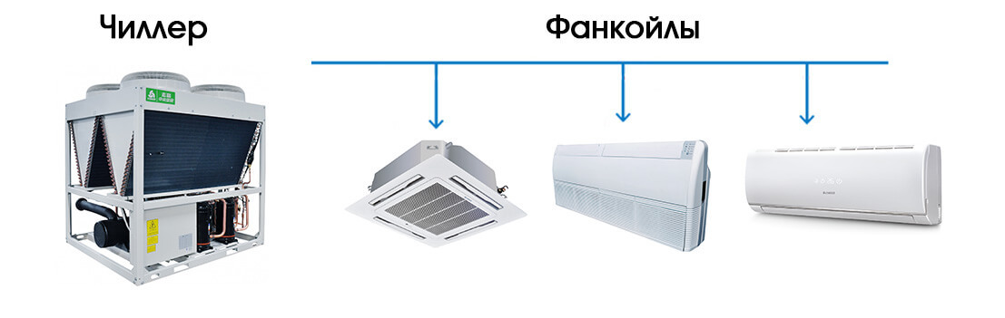 Система "чиллер-фанкойл" является популярным климатическим оборудованием в Испании, особенно в многоквартирных домах. Она отличается от других систем кондиционирования тем, что для связи внешнего и внутренних блоков используется не фреон, а вода или антифриз. Чиллер — это холодильная установка, охлаждающая жидкость. В нём вместо воздуха через испаритель проходит вода. Затем эта вода посредством насосной станции подаётся по теплоизолированным трубопроводам к фанкойлам, которые установлены в помещениях и выполняют функции внутренних блоков сплит-систем. Система "чиллер-фанкойл" имеет ряд преимуществ по сравнению с традиционными мульти-сплит и мультизональными системами: