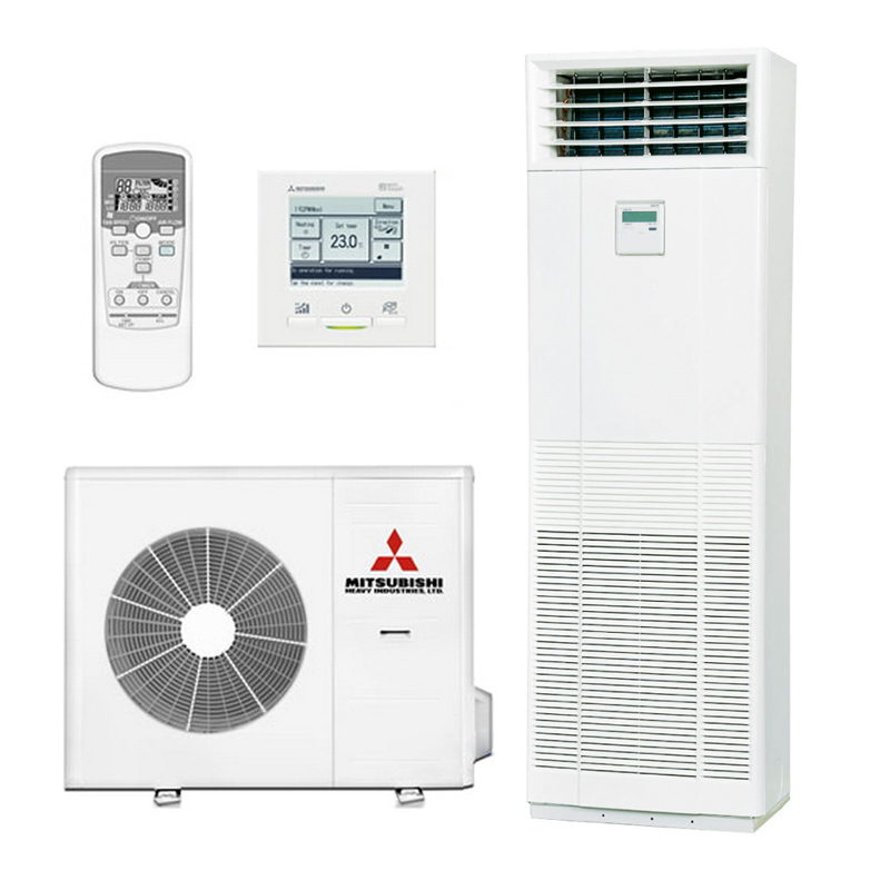 Колонный кондиционер. Не следует путать их с промышленными шкафными кондиционерами, так как колонные модели используются в местах, где необходима высокая холодопроизводительность и нет строгих требований к дизайну помещения. По размерам они схожи с холодильниками, тяжелы и устанавливаются на полу. Для размещения колонных кондиционеров требуется относительно большая площадь, поскольку они создают мощный поток охлажденного воздуха, и находиться рядом с ними неприятно из-за сильного обдува.